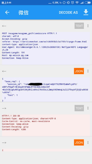 5.回到无root抓包软件,可以看到抓取到的数据;