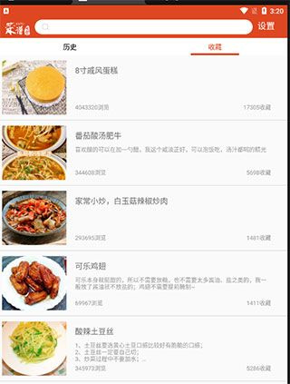 3、强大的收藏功能,喜欢的2265道美食菜谱,随时可以收藏方便查看;